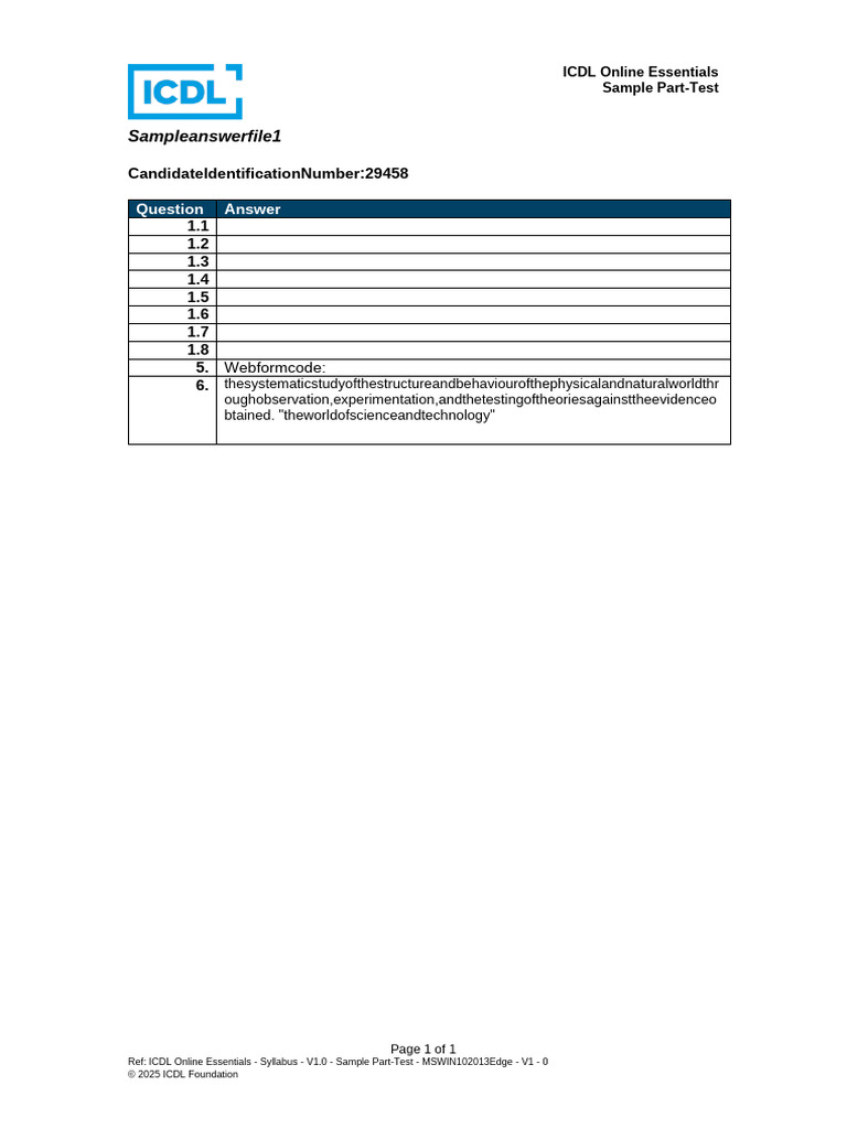 Ref: ICDL Online Essentials - Syllabus - V1.0 - Sample Part-Test - MSWIN102013Edge - V1 - 0