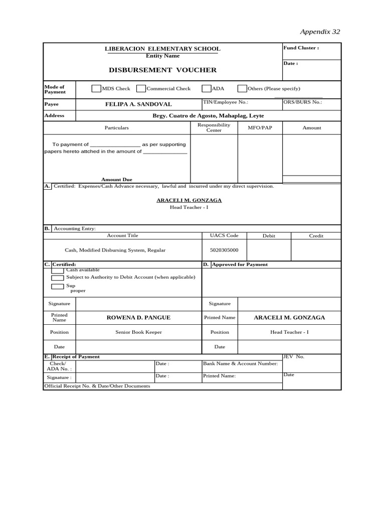 (Name of Disbursing Officer Designate) JEV No. : _____________________