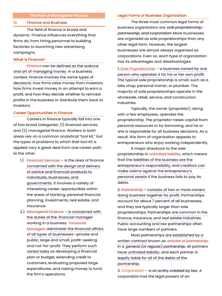1.1 Finance and Business The three most common legal forms of