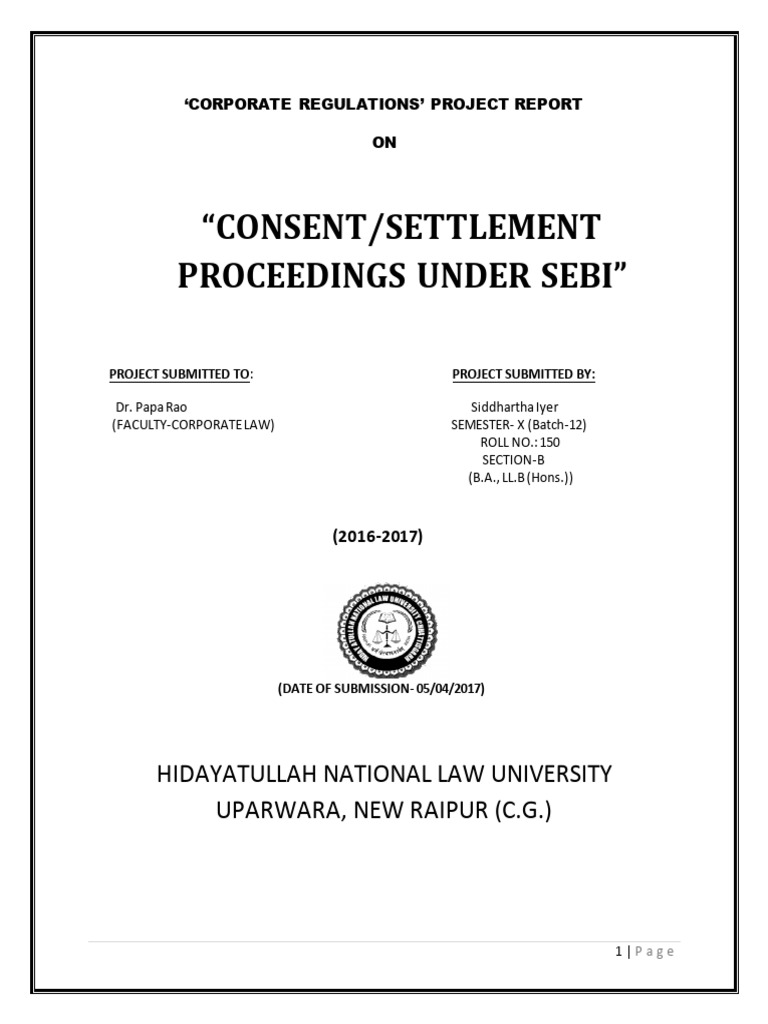 1. To study the concept of Consent proceedings under SEBI.