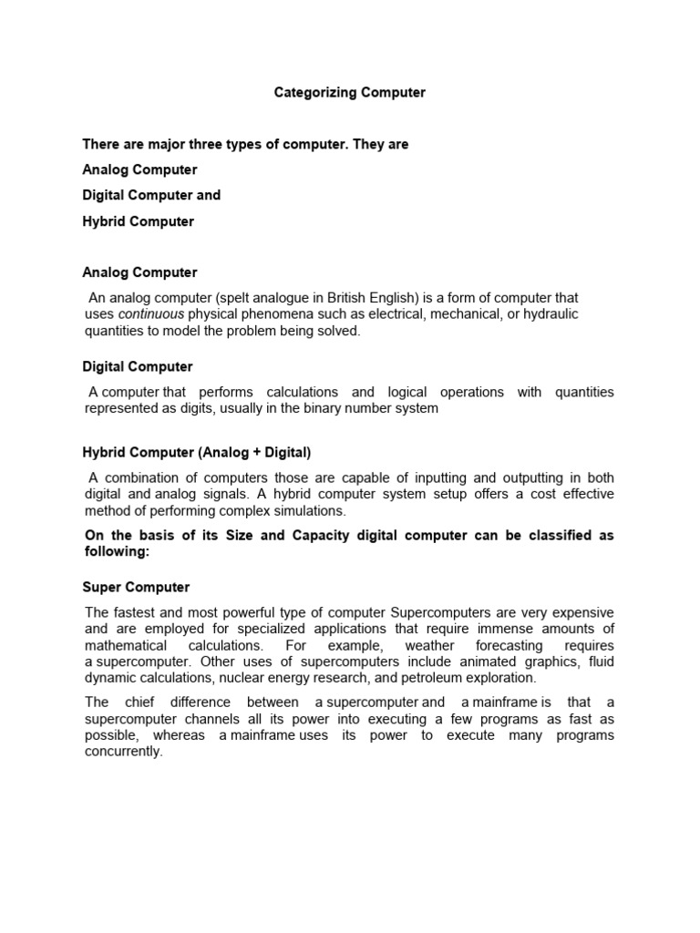 The fastest and most powerful type of computer Supercomputers are very expensive