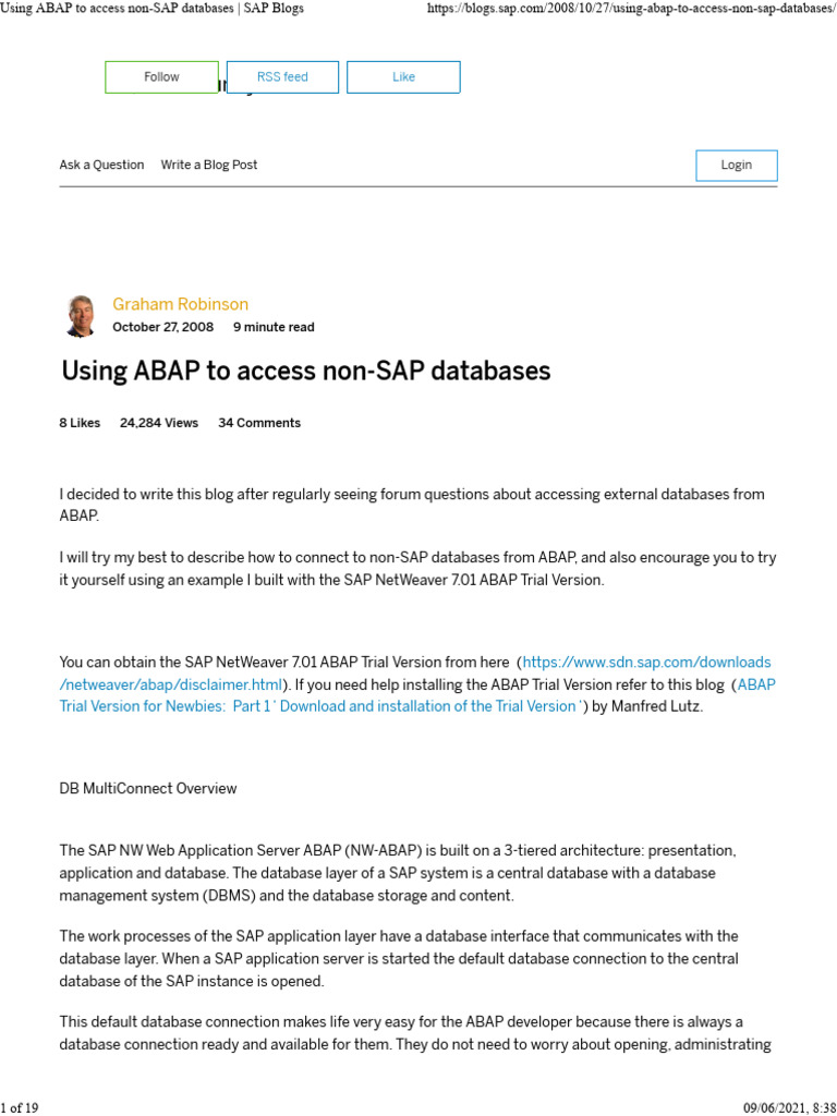 Using ABAP to access non-SAP databases | SAP Blogs https://blogs.sap.