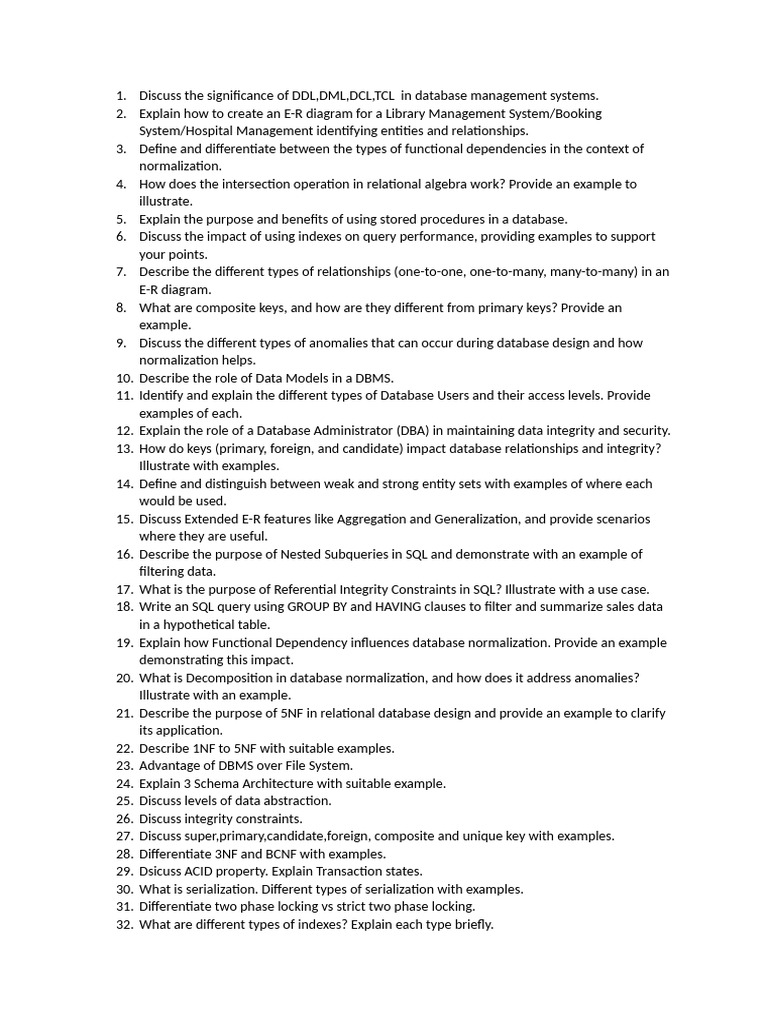 1. Discuss the significance of DDL,DML,DCL,TCL in database management systems.