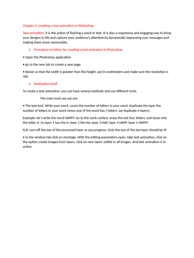 1. Procedure to follow for creating a text animation in Photoshop