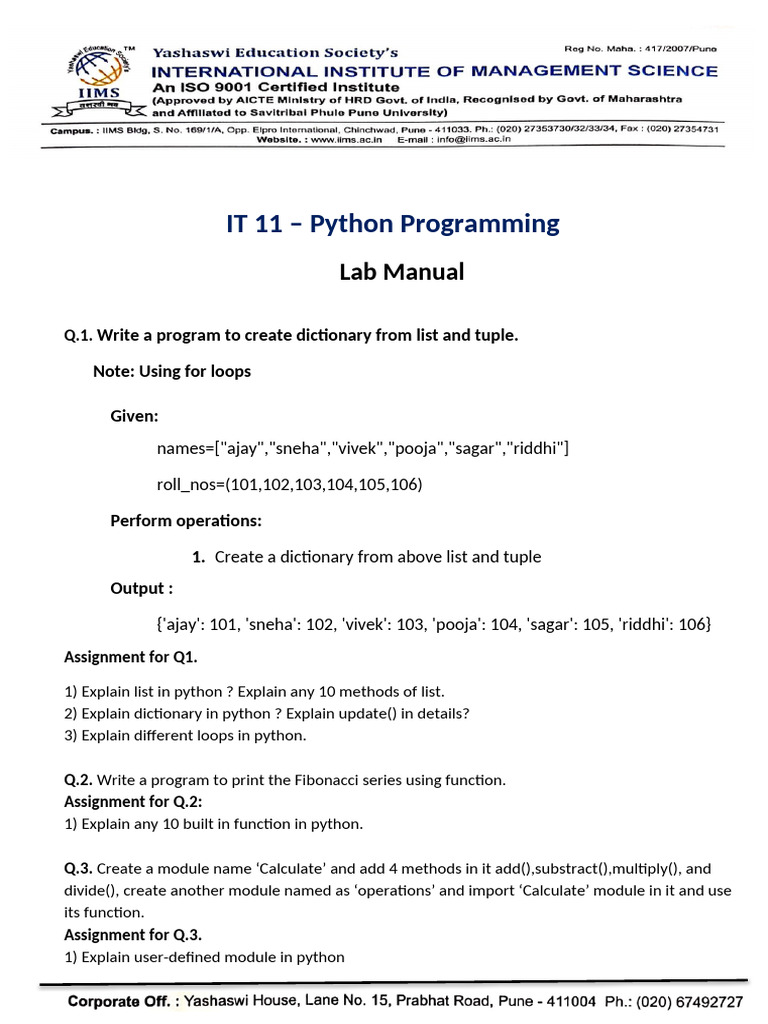 {'ajay': 101, 'sneha': 102, 'vivek': 103, 'pooja': 104, 'sagar': 105, 'riddhi': 106}