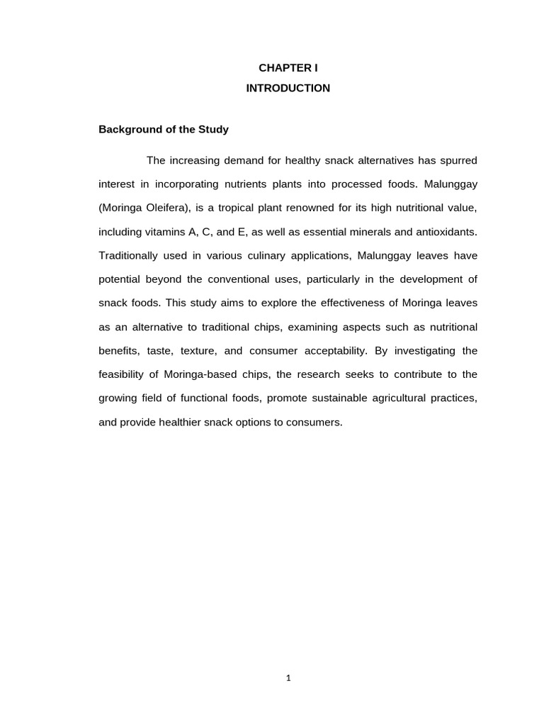 Chips”. The study will explore the use of Malunggay leaves as a primary