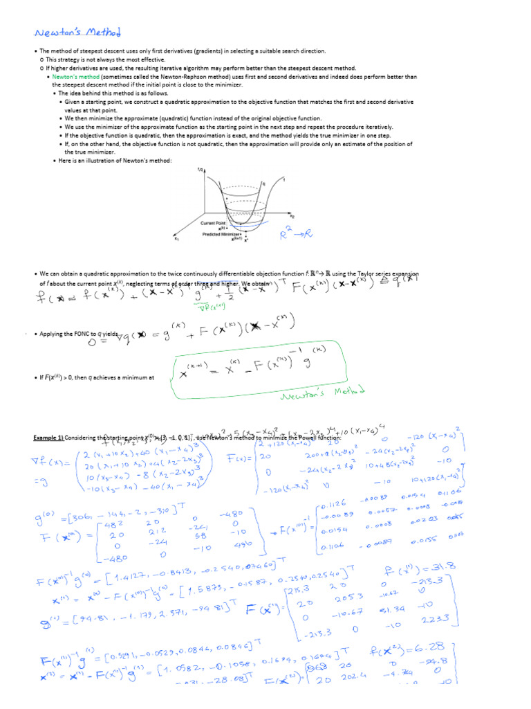 • If the objective function is quadratic, then the approximation is exact, and the method yields the true minimizer in one step.