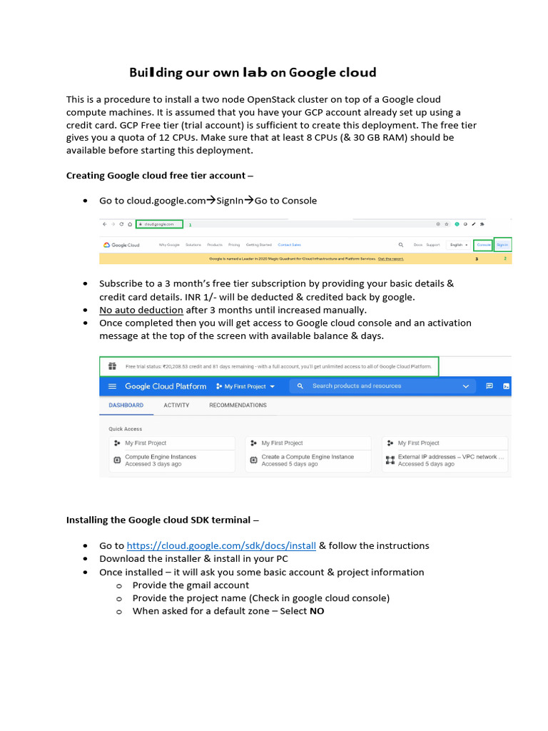 This is a procedure to install a two node OpenStack cluster on top of a Google cloud