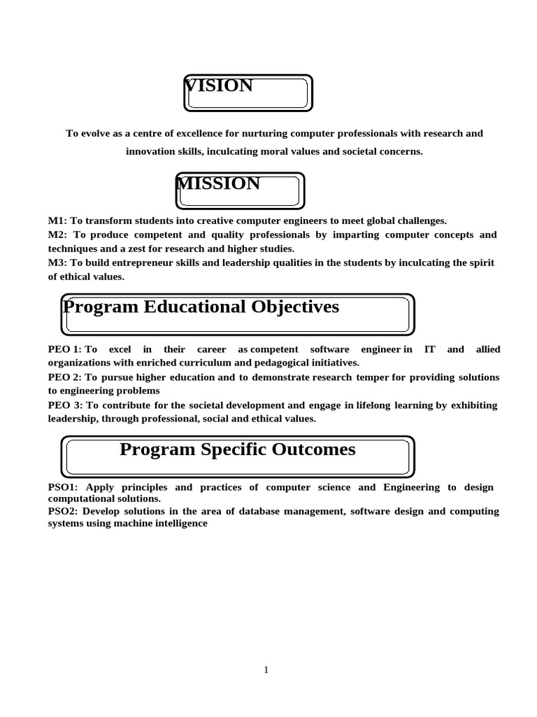 M1: To transform students into creative computer engineers to meet global challenges.
