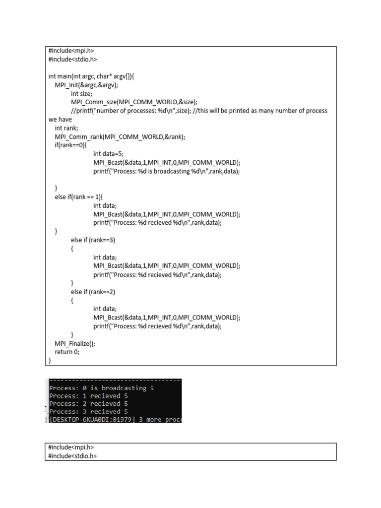 //printf("number of processes: %d\n",size); //this will be printed as many number of process