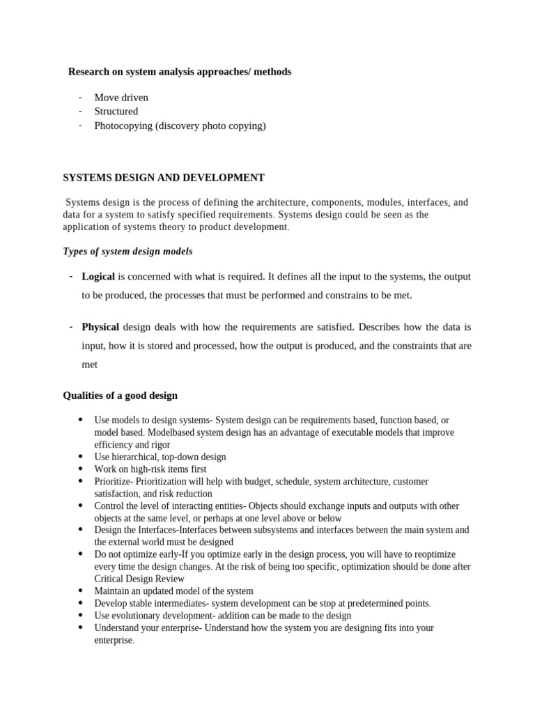 data for a system to satisfy specified requirements. Systems design could be seen as the