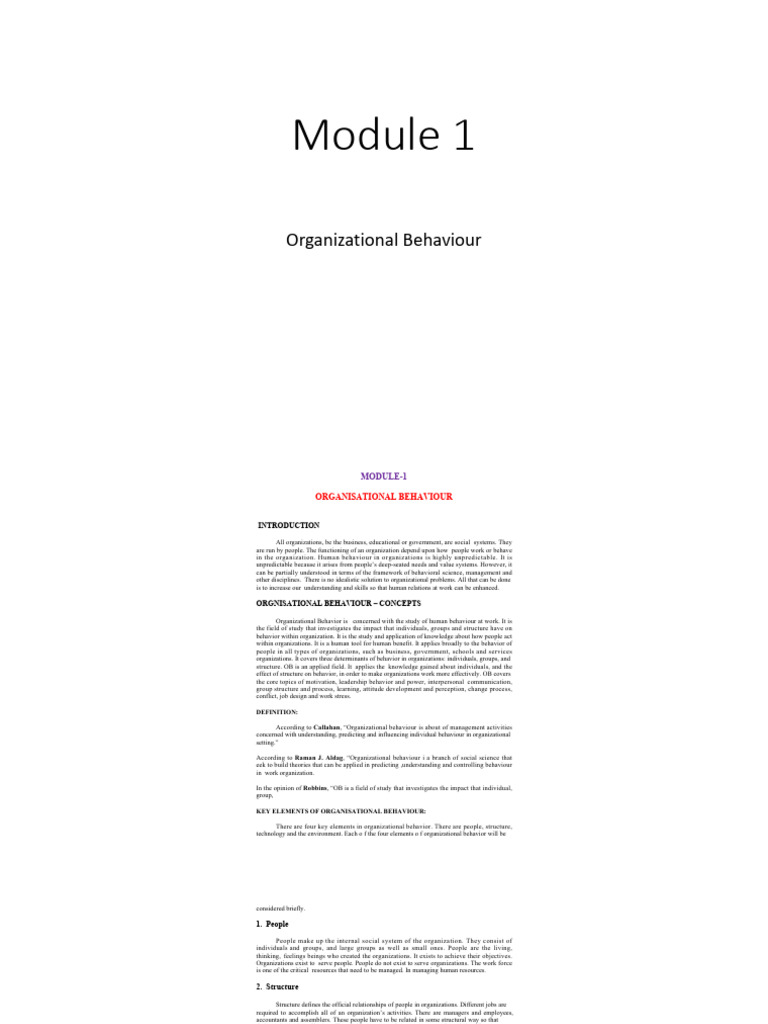 technology and the environment. Each o f the four elements o f organizational behavior will be