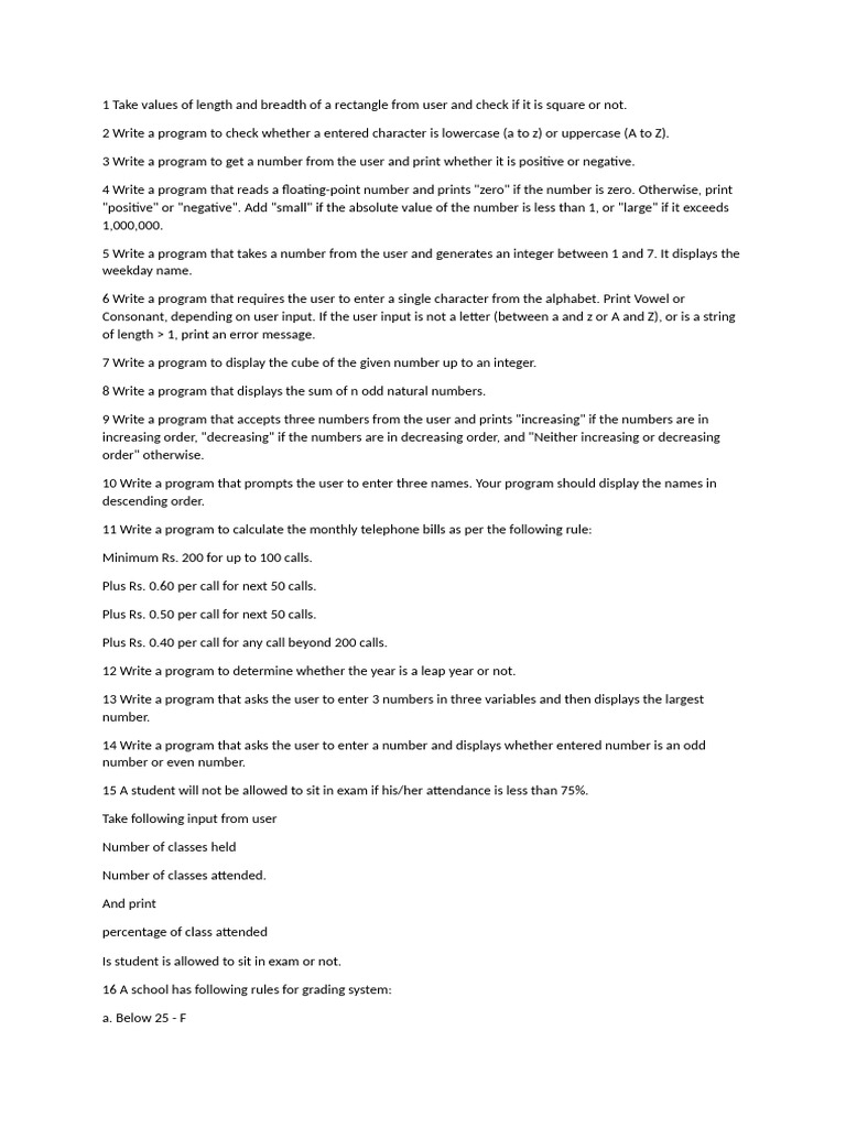 11 Write a program to calculate the monthly telephone bills as per the following rule: