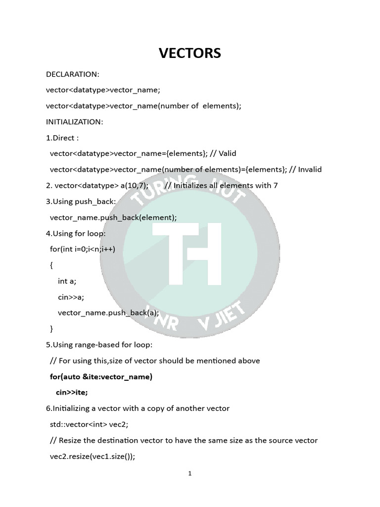 2. vector<datatype> a(10,7); // Initializes all elements with 7
