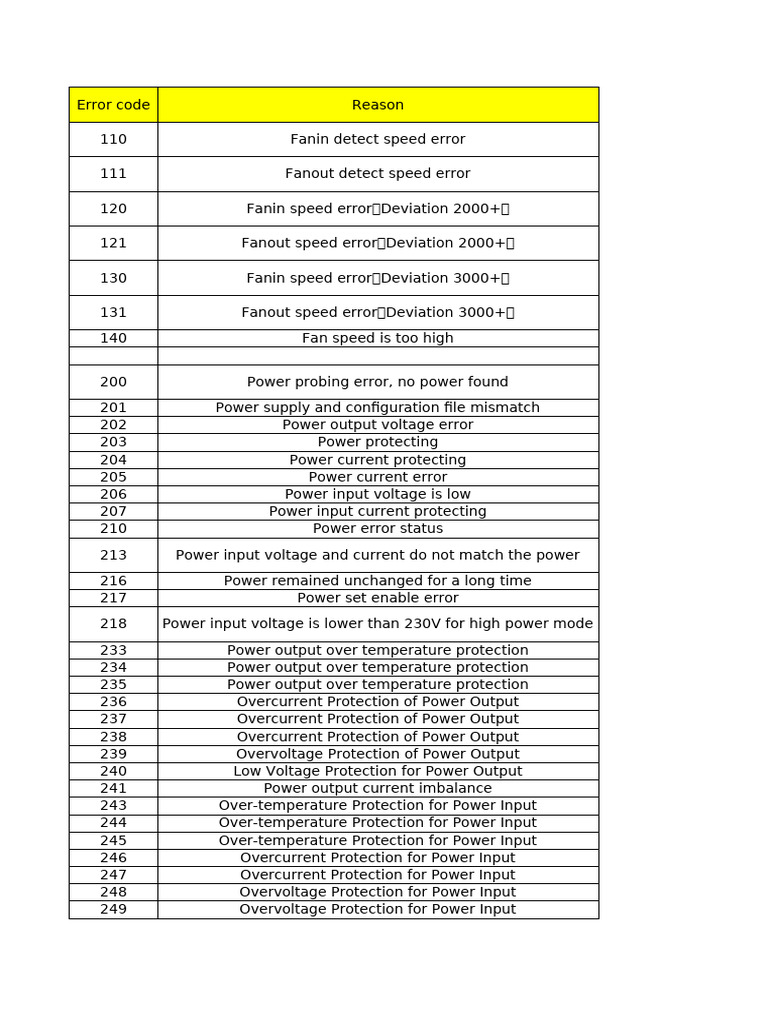 0x0040 Output over current (continuous load 320A for more than 2S)