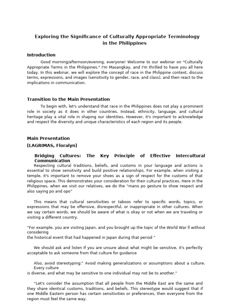 culturally appropriate race and communication in the Philippines. Remember, while race