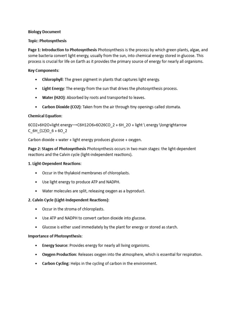 Page 1: Introduction to Photosynthesis Photosynthesis is the process by which green plants, algae, and