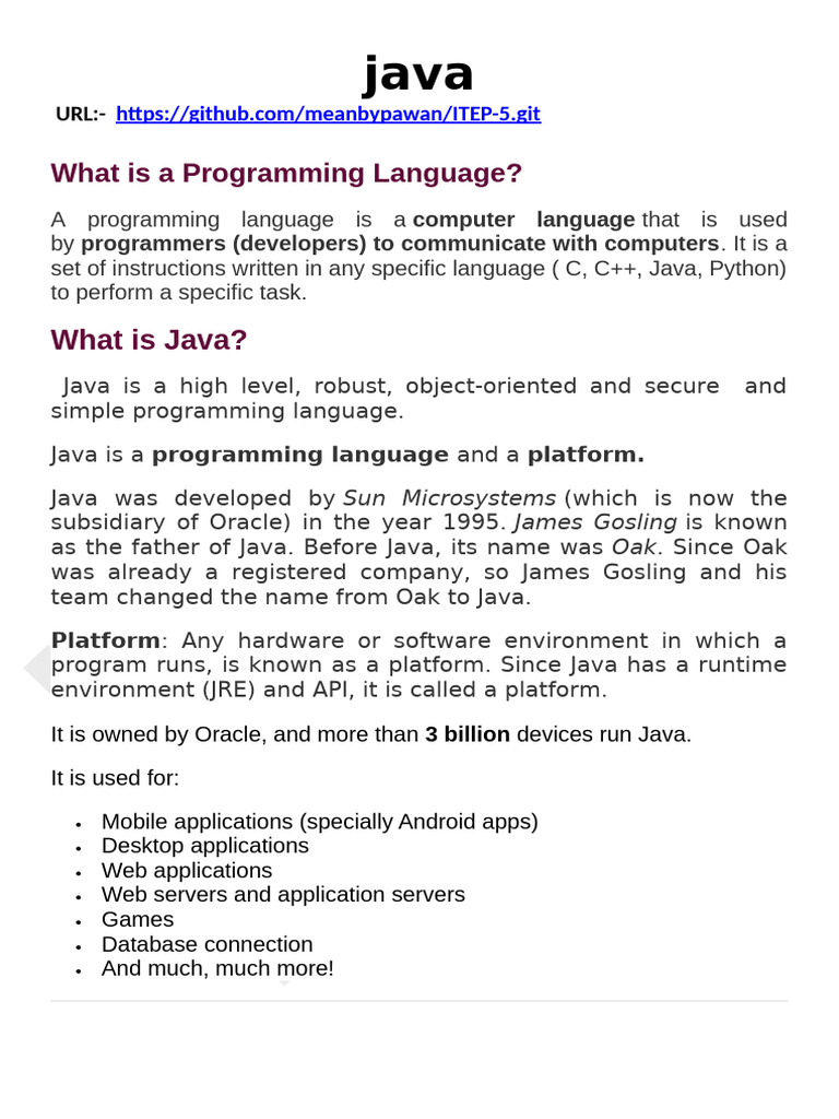 output. Java is
