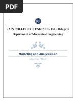 AIM: To conduct the mode frequency analysis of beam using ANSYS software. SYSTEM CONFIGURATION: Ram Processor Operating system Software PROCEDURE: The three main steps to be involved are 1. Pre Processing 2. Solution 3. Post Processing Start - All Programs Ansys 10- Mechanical APDL Product Launcher Set the Working Directory as E Drive, User - Job Name as Roll No., Ex. No. Click Run. PREPROCESSING: 32. Preprocessor - Element type - Add/Edit/Delete Add Beam, 2D elastic 3 Ok Close. 33. Real constants - Add/Edit/Delete Add Ok Area 0.1e-3, Izz 0.833e-9, Height 0.01 Ok Close. 34. Material props - Material Models Structural Linear Elastic - Isotropic EX 206e9, PRXY 0.25 Ok Density DENS 7830 Ok. 35. Modeling Create Key points Inactive CS Enter the coordinate values - Ok. Lines lines Straight Line Join the two key points Ok. 36. Meshing Size Cntrls manual size lines all lines Enter the value of no of element divisions 25 Ok. Mesh Lines Select the line Ok. SOLUTION: 13. Solution Define Loads Apply Structural Displacement - On nodes Select the node point Ok All DOF Ok. Analysis type New analysis Modal Ok. Analysis type Analysis options Block Lanczos enter the value no of modes to extract as 3 or 4 or 5 Ok End Frequency 10000 Ok. 14. Solve Current LS Ok Solution is done Close. POST PROCESSING: 8. General post proc Read results First set - Plot results Deformed shape Choose Def+undeformed Ok. Read results Next set - Plot results Deformed shape Choose Def+undeformed Ok and so on. : 2 GB : Core 2 Quad / Core 2 Duo : Window XP Service Pack 3 : Ansys (Version10)