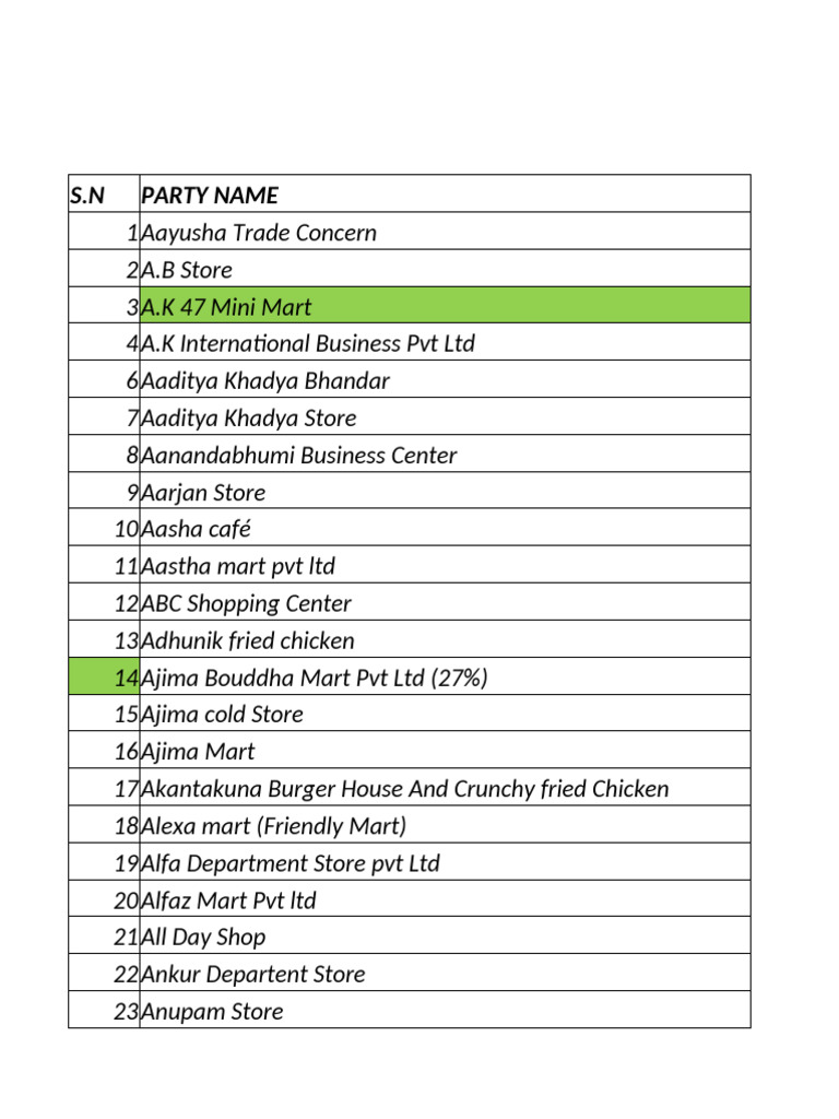 14 Ajima Bouddha Mart Pvt Ltd (27%)
