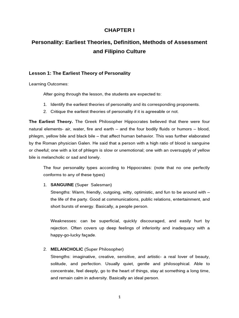 1. Identify the earliest theories of personality and its corresponding proponents.