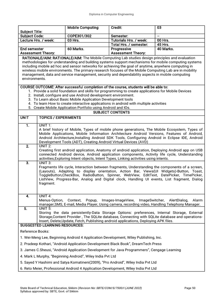 State Board of Technical Education, Sikkim (Revision No: SBTE/COM/S/7500/I (JUNE 2022) Page 50