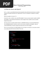 1. Member functions These are functions which are considered part of the object and are declared in the class definition. They are often referred to asmethods of the class. In addition to member functions, a class's behavior is also defined by: constructor for that object: what to do when you create a new object destructor for that object: what to do when you delete an object 2. Private vs. public members A public member of a class is one that can be read or written by anybody, in the case of a data member, or called by anybody, in the case of a member function. It provides an interface with the outside world. A private member can only be read, written, or called by a member function of that class.