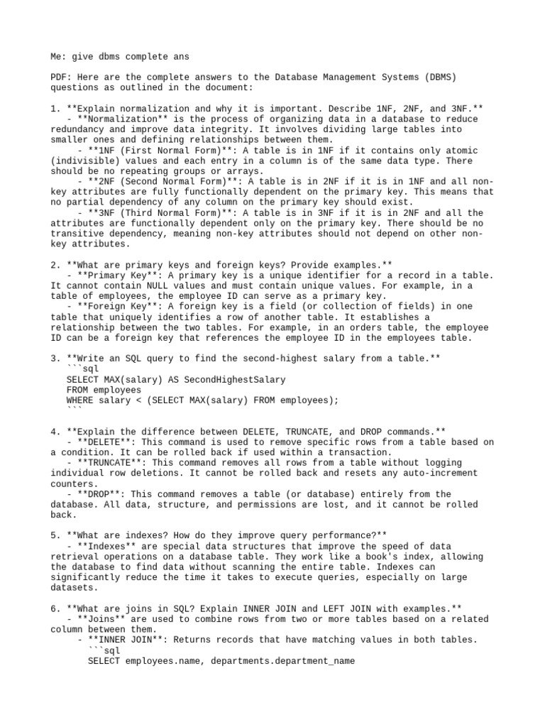 Me: give dbms complete ans