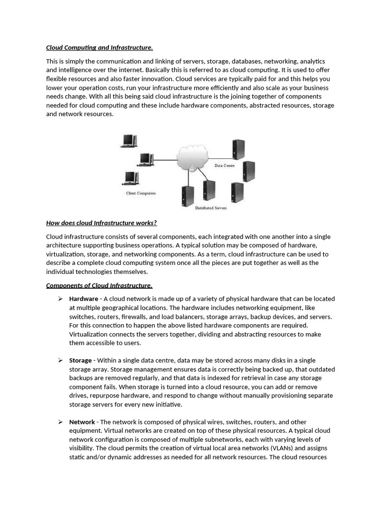 needs change. With all this being said cloud infrastructure is the joining together of components