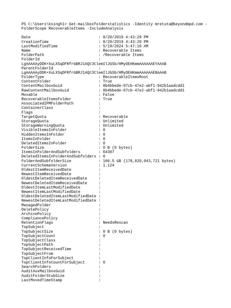 PS C:\Users\ksingh1> Get-mailboxfolderstatistics -Identity mretuta@beyondmpd.