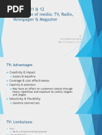 perishable. Magazine advertising can target specific audiences expensive to run. Displays provide visibility but are difficult to