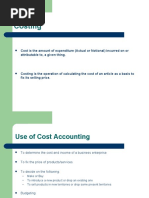 2. Explain the terms prime cost, factory cost, total cost and selling price. Show the relationship between various components of cost with the help of a Ladder diagram. 3. A Certain article is manufactured in batches f 100. The direct material cost is Rs. 250, direct labour cost Rs.400 and factory overheads Rs.290. if the selling on-cost is 40% of prime cost, what should be the selling price of each product to obtain a profit of 20% (i.e., profit is 20% of selling price). 4. A manufacturing firm has total overheads of Rs.1,20,000 and total prime cost Rs.2.5 lacs for the year 2002-03. Find out the share of overheads to be allocated to products A and b by proportional to prime cost method using the following date Direct material cost Direct labour cost Direct other expenses Product A Rs. 900 Rs. 700 Rs. 300 Product B Rs.1000 Rs.600 Rs.250