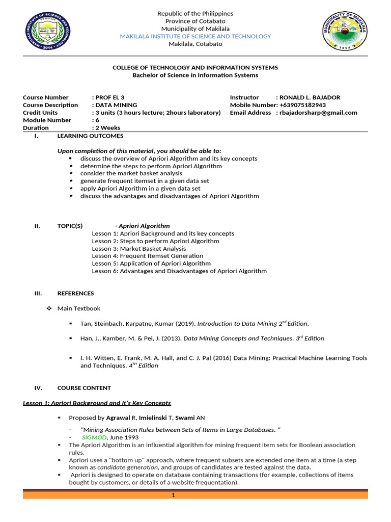 Han, J., Kamber, M. & Pei, J. (2013). Data Mining Concepts and Techniques. 3rd Edition