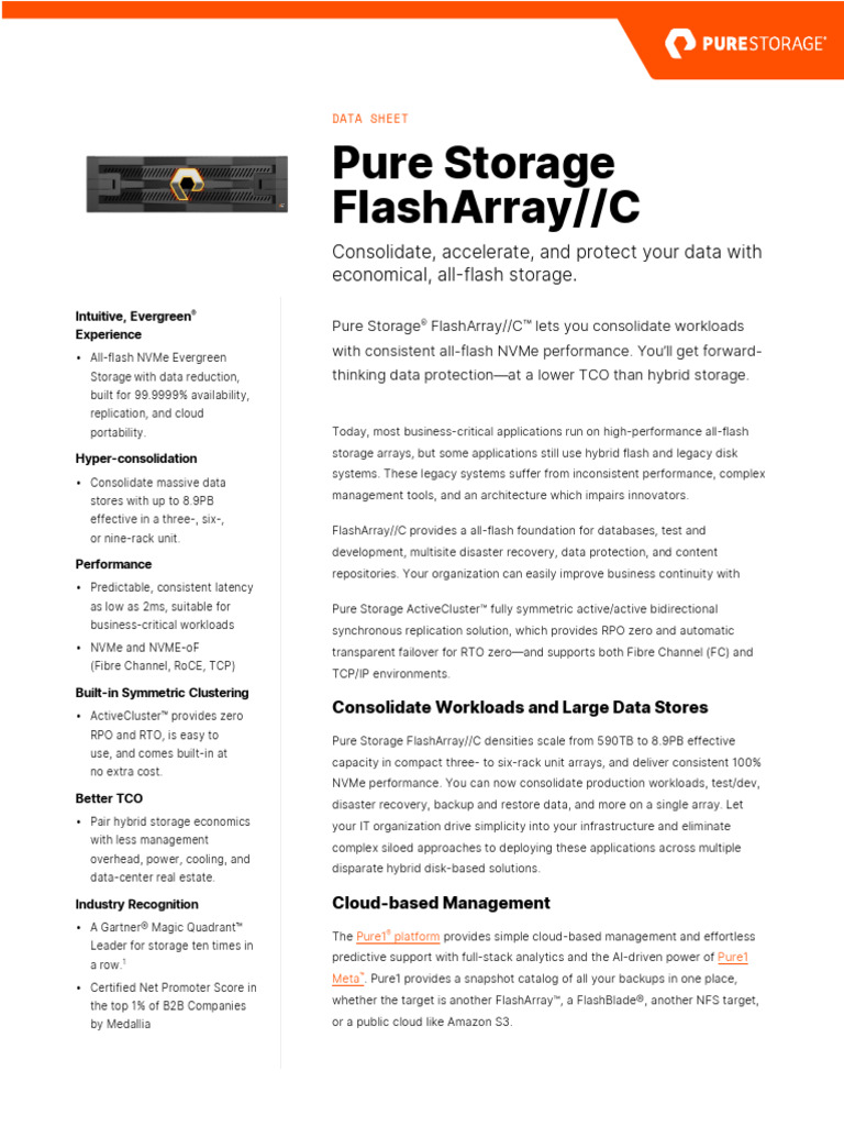 Purity for FlashArray delivers rich, enterprise-level data services; DirectFlash® global flash management; and Evergreen