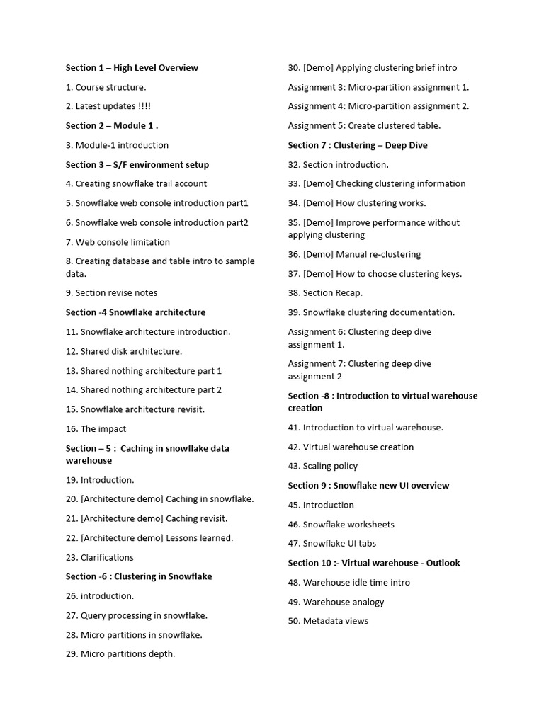 Section -4 Snowflake architecture 39. Snowflake clustering documentation.