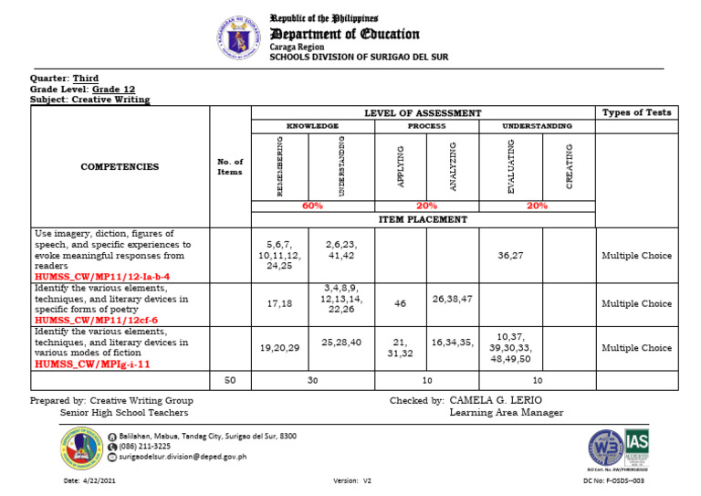 Prepared by: Creative Writing Group Checked by: CAMELA G. LERIO