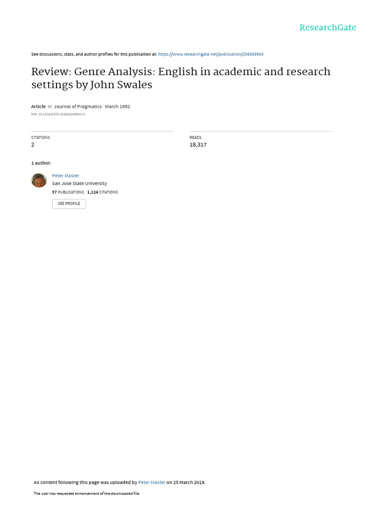 Review: Genre Analysis: English in academic and research