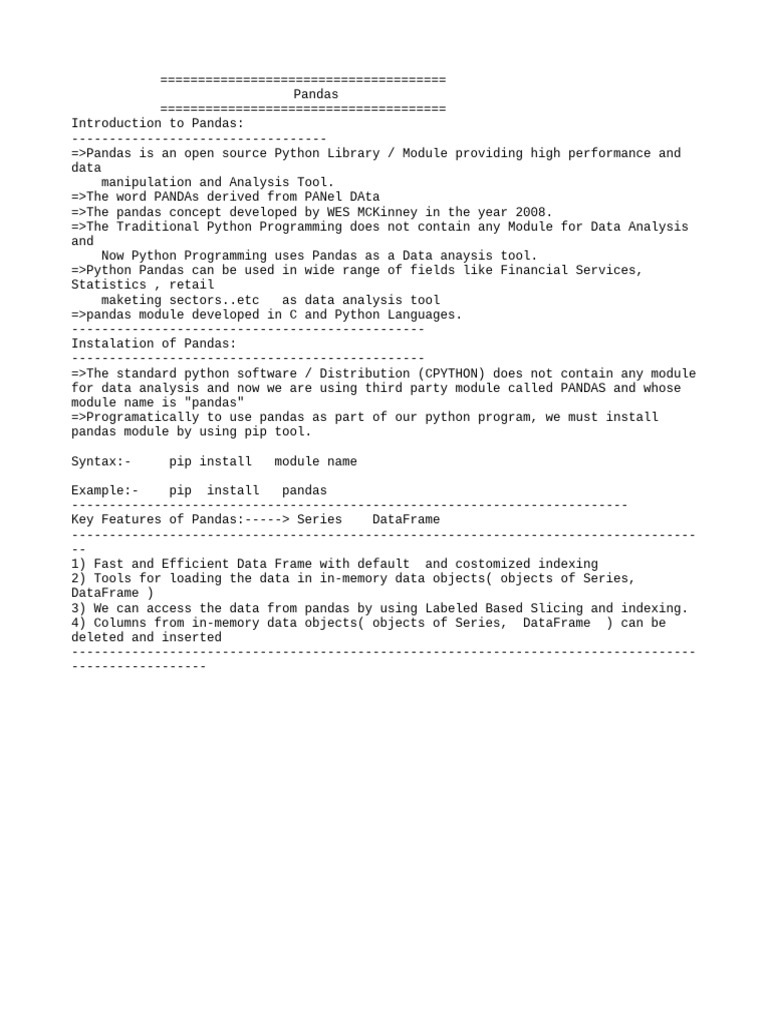 =>The pandas concept developed by WES MCKinney in the year 2008.
