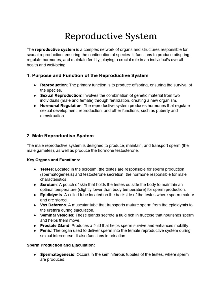 ● Reproduction: The primary function is to produce offspring, ensuring the survival of
