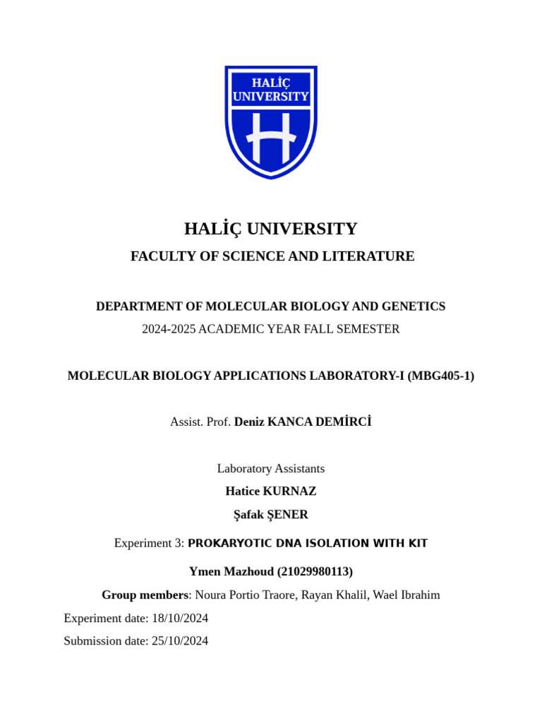 [8] Demirci, D. K. (2024). Prokaryotic DNA Isolation with Kit. Laboratory Notes,