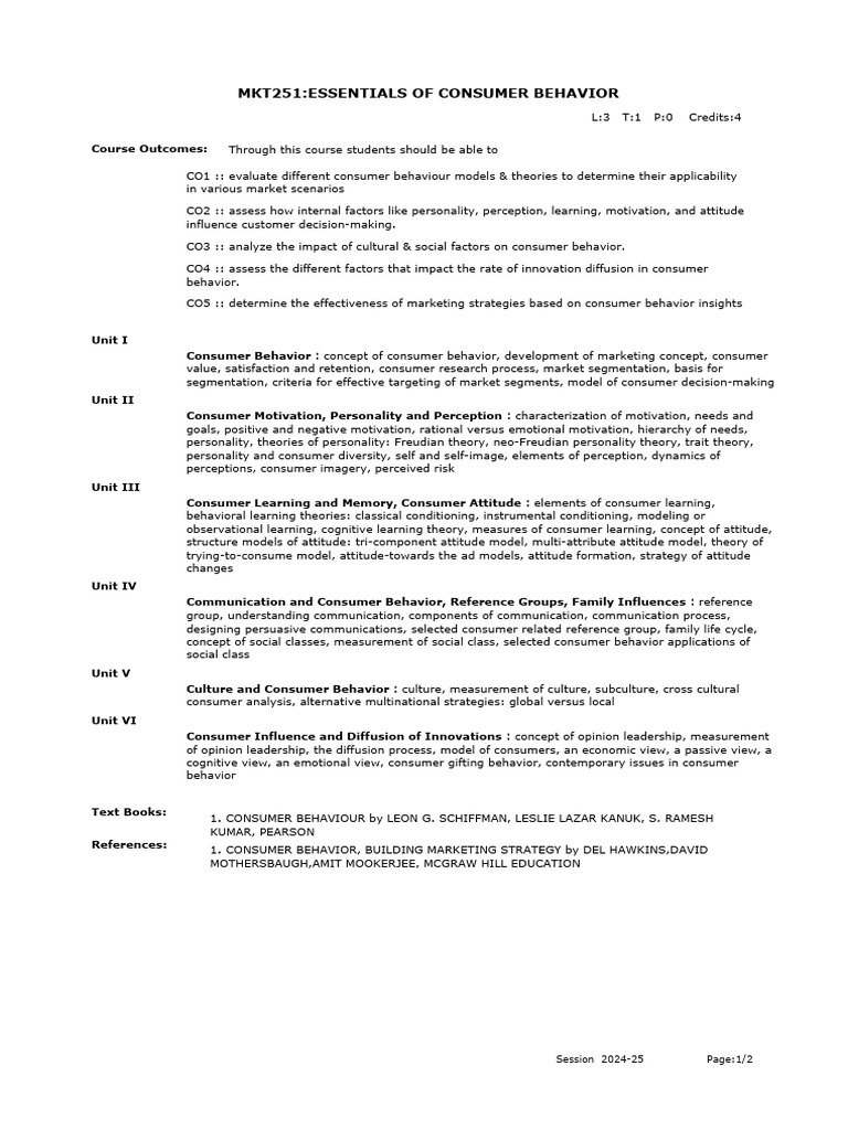 MKT251:ESSENTIALS OF CONSUMER BEHAVIOR