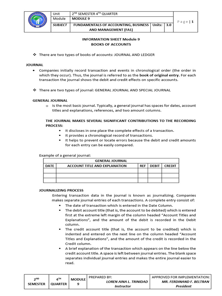which they occur). Thus, the journal is referred to as the book of original entry. For each