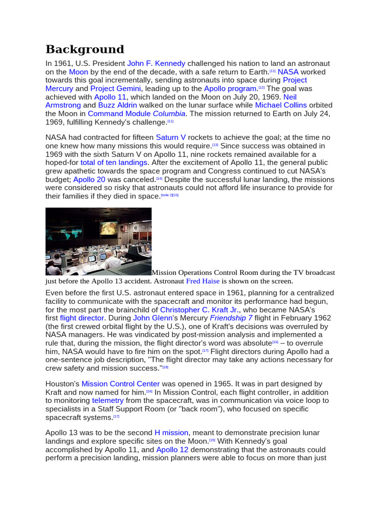 landings and explore specific sites on the Moon.[19] With Kennedy's goal