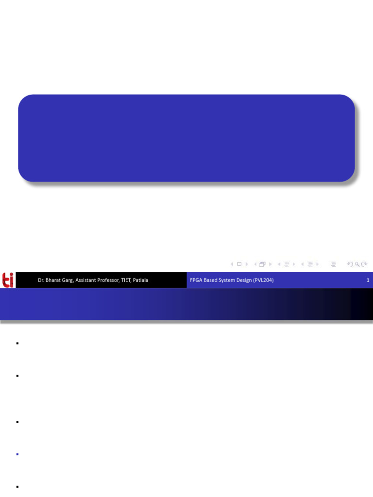 Dr. Bharat Garg, Assistant Professor, TIET, Patiala FPGA Based System Design (PVL204) 1