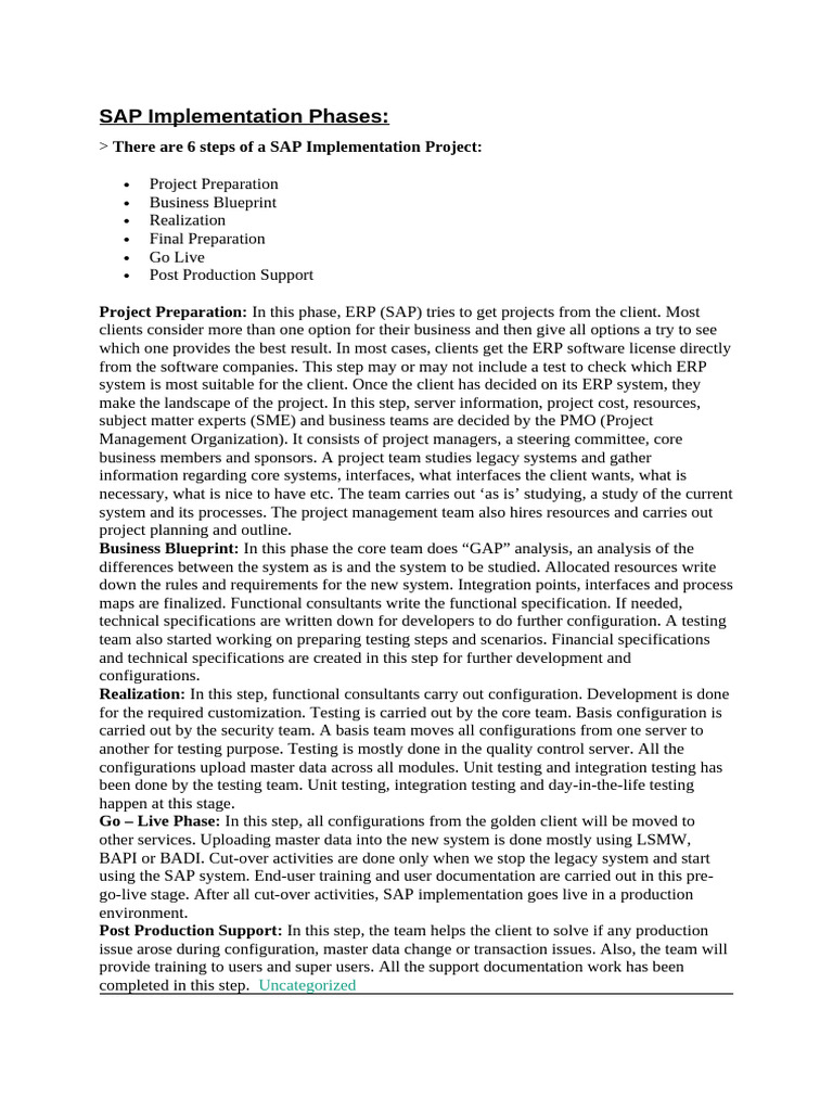 Business Blueprint: In this phase the core team does “GAP” analysis, an analysis of the