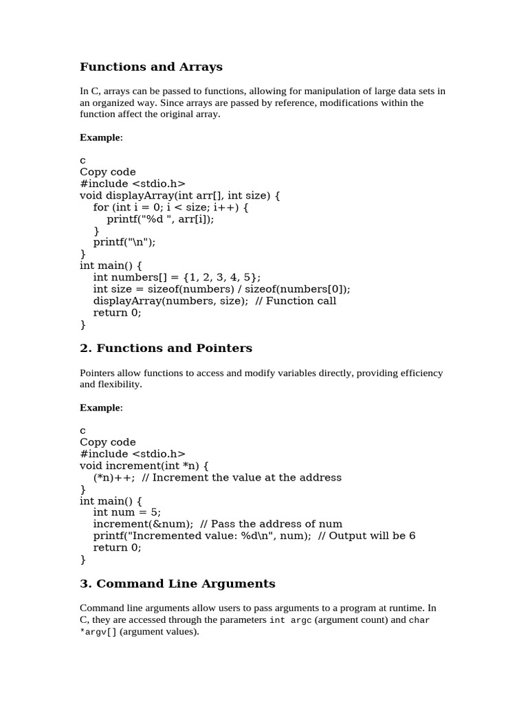 Functions and Pointers: Functions using pointers enable direct manipulation of values.