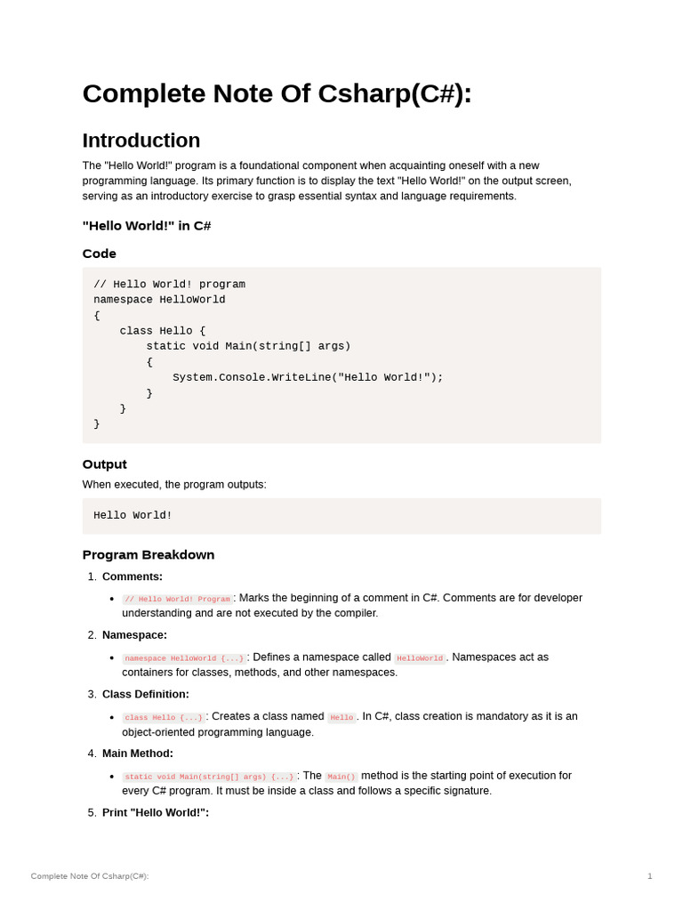 // Hello World! Program : Marks the beginning of a comment in C#. Comments are for developer