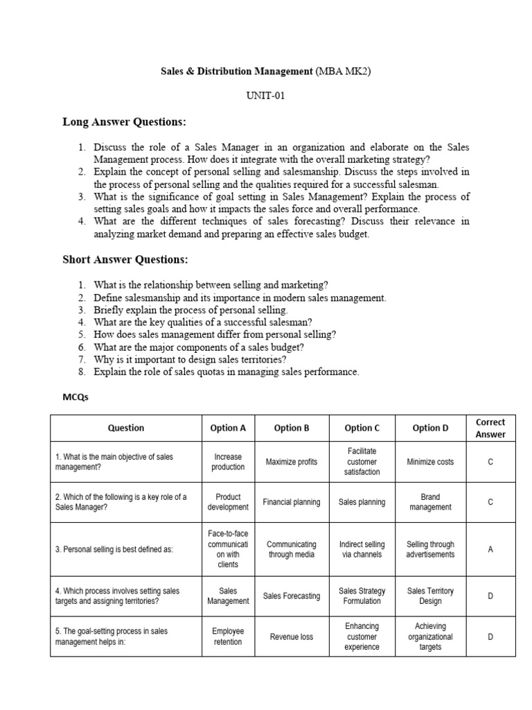 1. Discuss the role of a Sales Manager in an organization and elaborate on the Sales