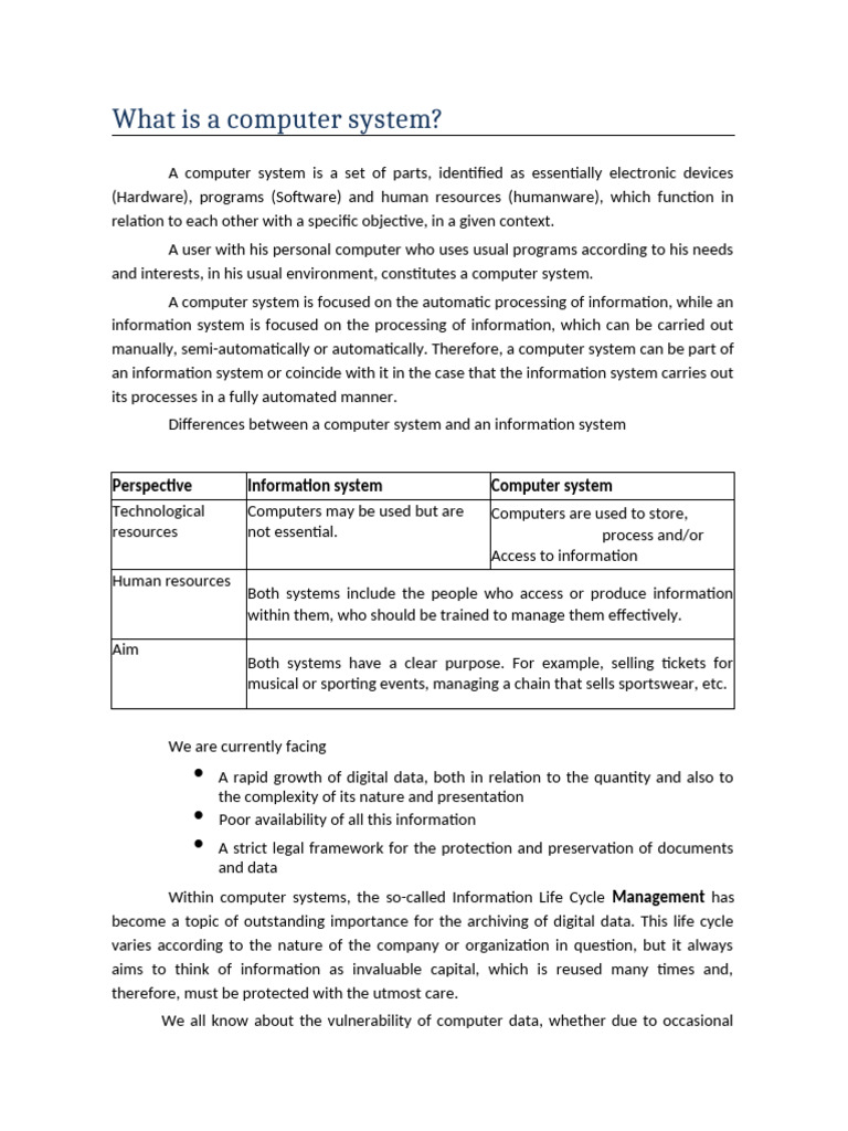 Differences between a computer system and an information system