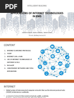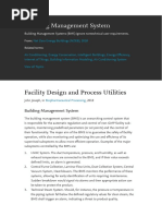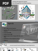 The document outlines a Building Management System (BMS) that centralizes control and monitoring of various building services such as HVAC, lighting, and power management. It highlights the benefits of energy efficiency, predictive maintenance, and improved safety through integrated systems. The BMS utilizes data from sensors and employs protocols like BACnet and LonWorks for effective communication and automation.